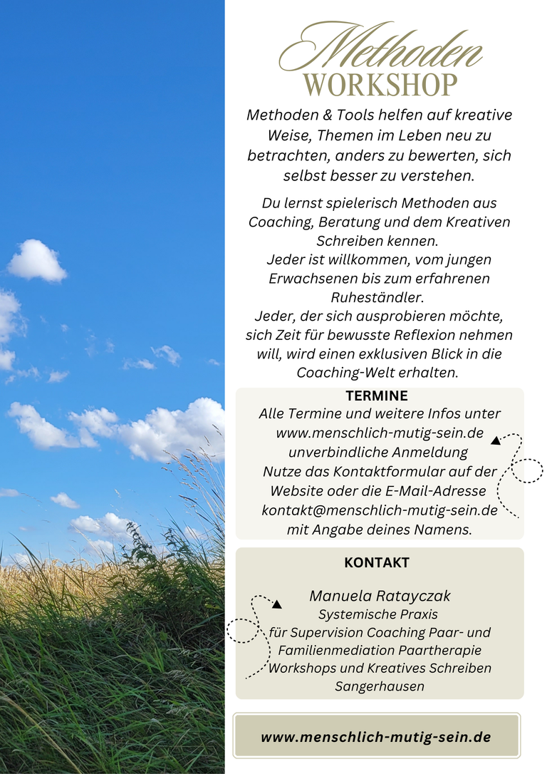 Methoden & Tools helfen auf kreative Weise, Themen im Leben neu zu betrachten, anders zu bewerten, sich selbst besser zu verstehen.